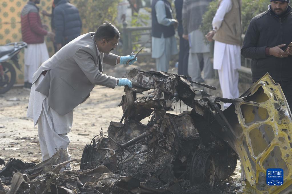 12月23日,安全人員在巴基斯坦伊斯蘭堡的自殺式爆炸襲擊事件現場(chǎng)調查。
