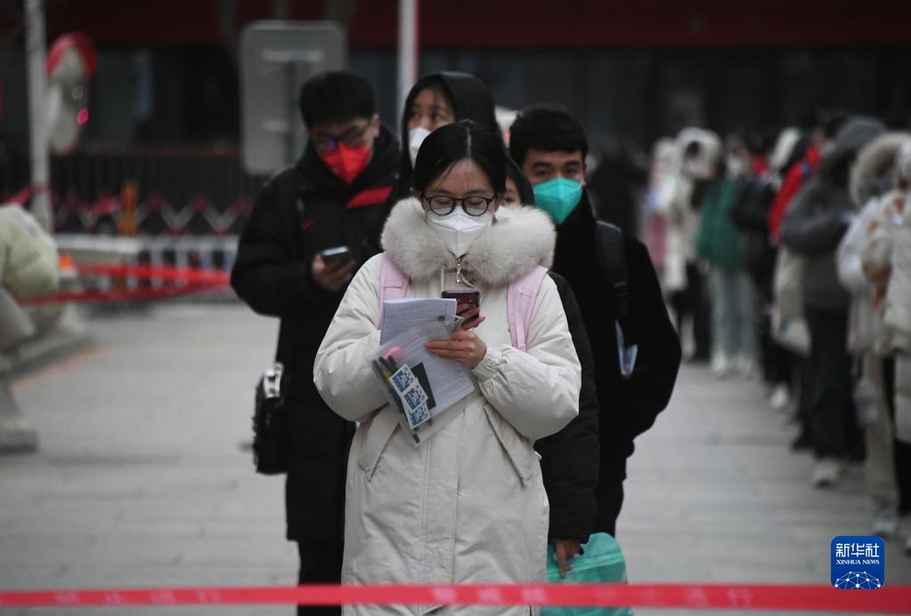 12月24日,在北京外國語(yǔ)大學(xué)考點(diǎn),考生排隊準備進(jìn)入考場(chǎng)。