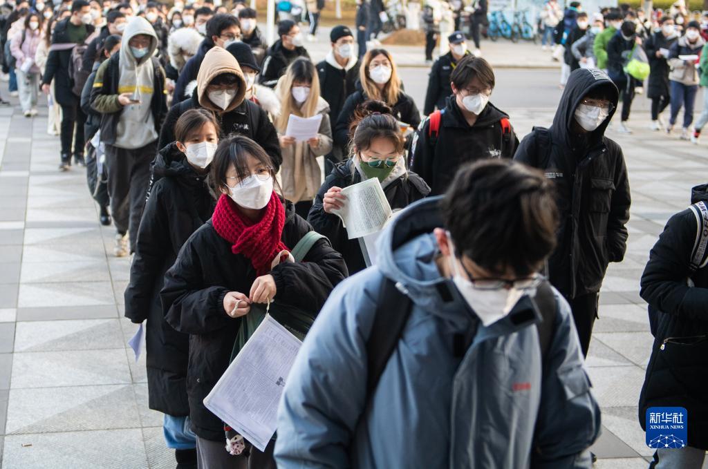 12月24日,在湖南中南大學(xué)考點(diǎn),考生排隊進(jìn)入考場(chǎng)。