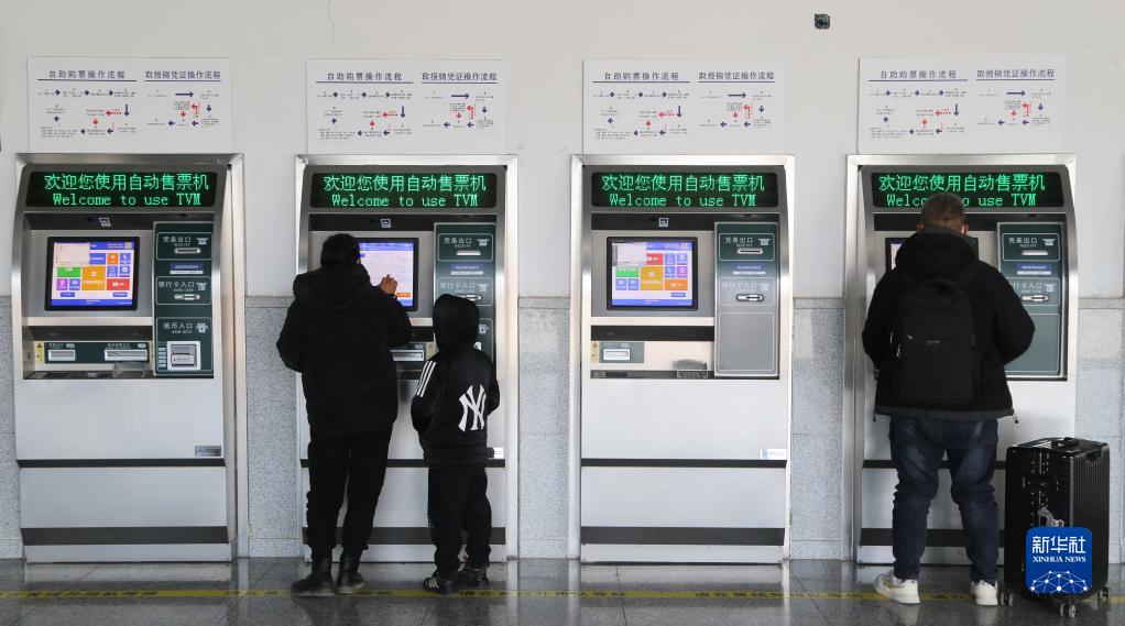 12月24日,旅客在寶蘭高鐵定西北站自助售票處辦理購票。