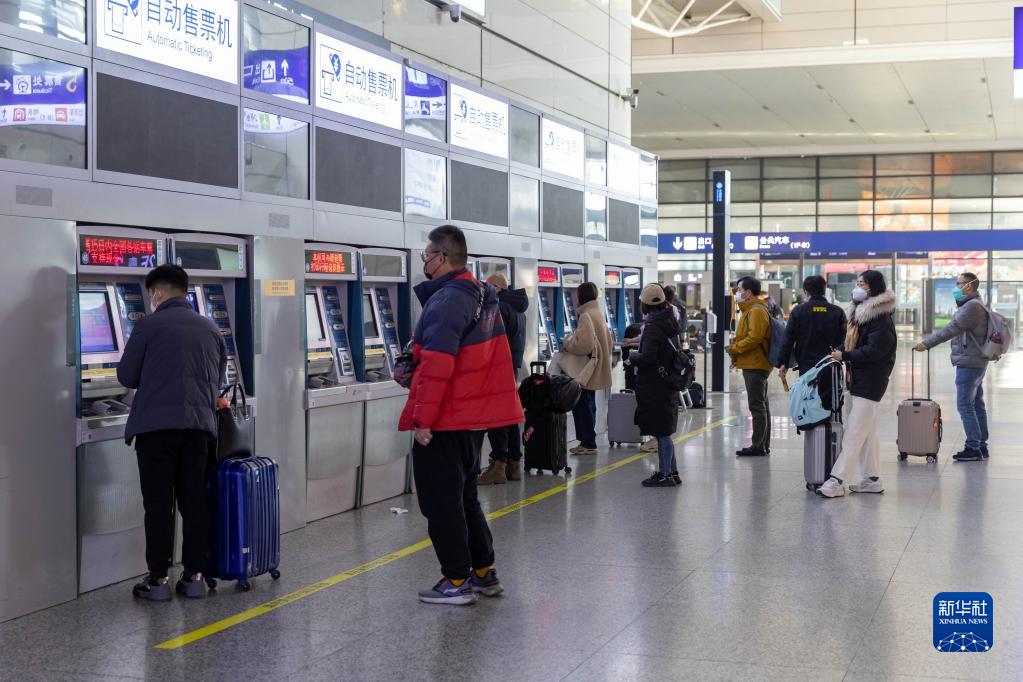 12月24日,旅客在上海虹橋火車(chē)站自助售票機前辦理火車(chē)票業(yè)務(wù)。