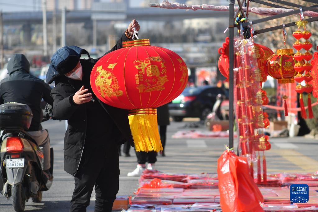 12月24日,在山東省青島市城陽(yáng)區流亭街道雙埠年貨大集上,市民選購紅燈籠。