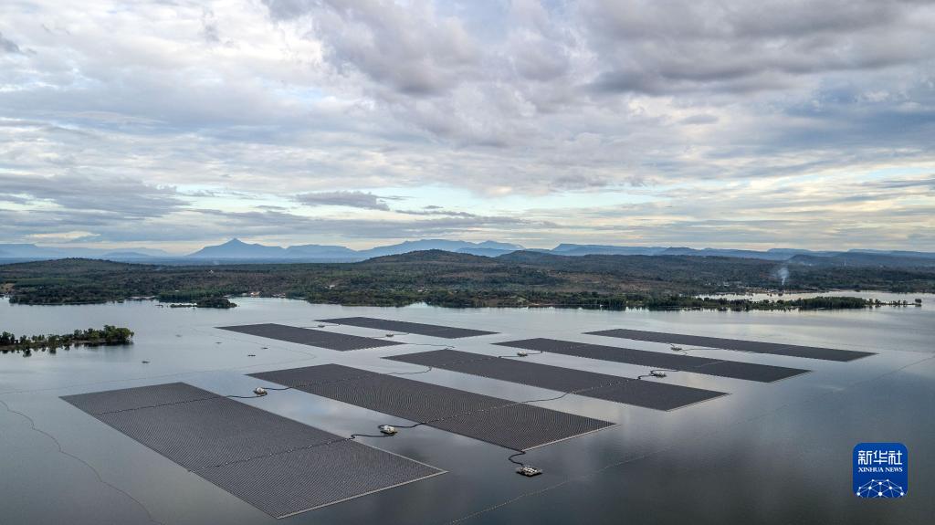 這是12月8日在泰國烏汶府詩(shī)琳通水庫拍攝的浮體光伏項目(無(wú)人機照片)。