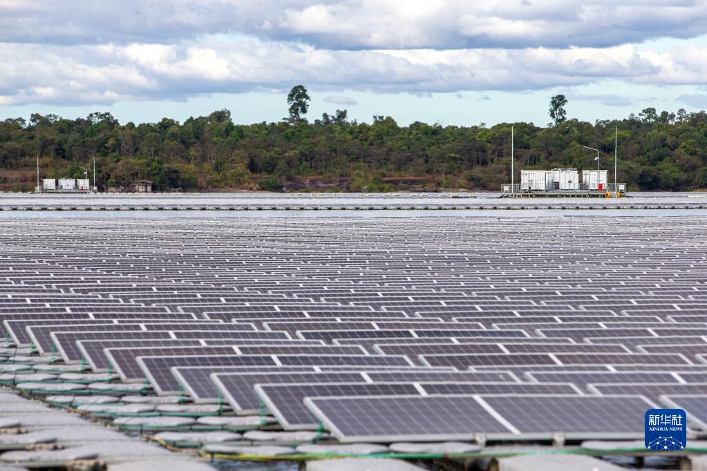 這是12月8日在泰國烏汶府詩(shī)琳通水庫拍攝的浮體光伏項目。