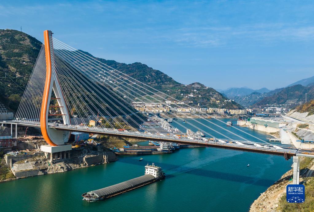 湖北省宜昌市香溪河上“琵琶形”獨塔斜拉橋主體結構基本建成,塔身采用順橋向傾斜10度的琵琶造型。香溪河因昭君出塞而得名,是長(cháng)江的支流,從長(cháng)江三峽西陵峽上游峽口匯入長(cháng)江。該橋是連接宜昌市興山縣和秭歸縣的重點(diǎn)交通樞紐工程。