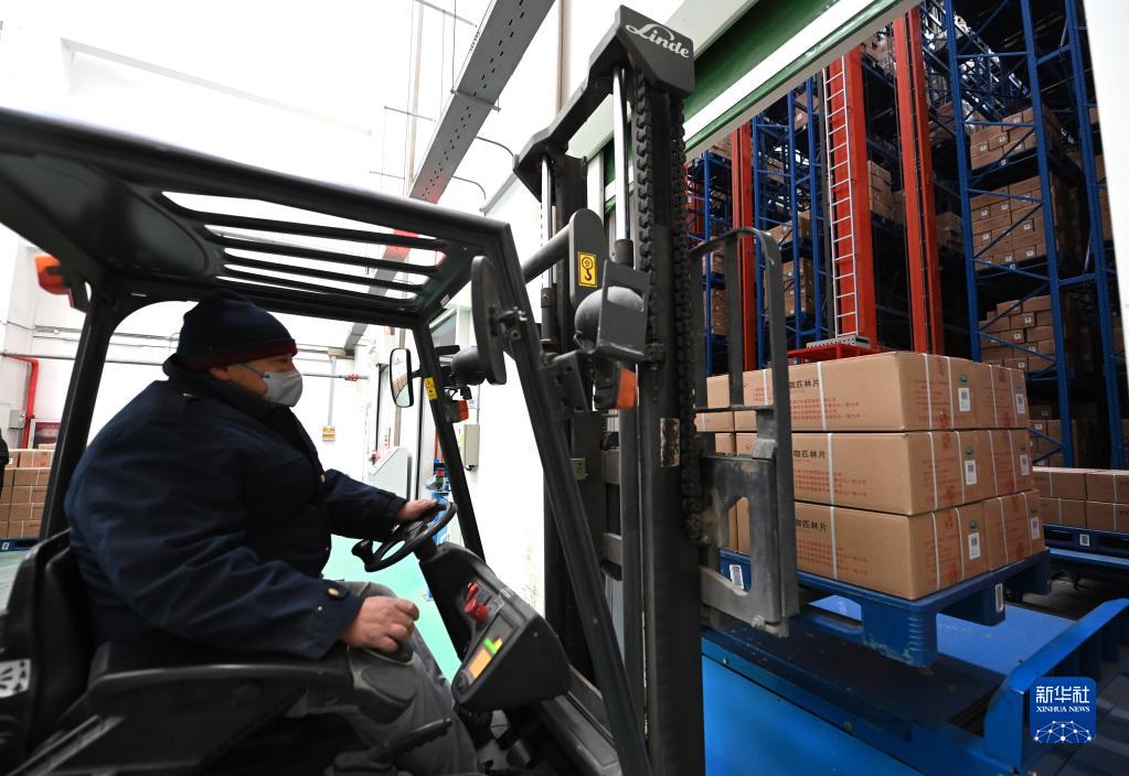12月24日,在天津力生制藥股份有限公司庫房?jì)?,工作人員在轉運藥品。