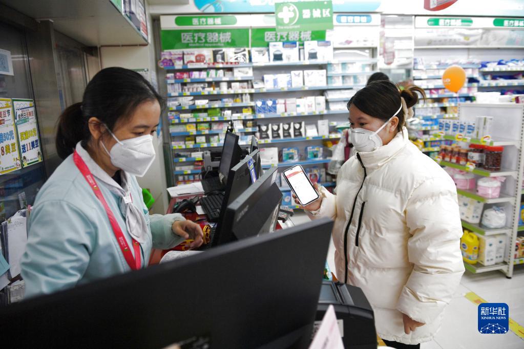 12月24日,市民在貴陽(yáng)市云巖區一家藥店領(lǐng)取退燒藥。