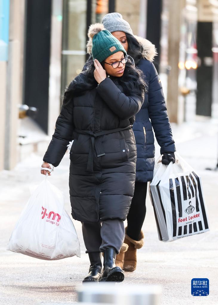12月24日,人們冒著(zhù)嚴寒在美國芝加哥市中心購物。
