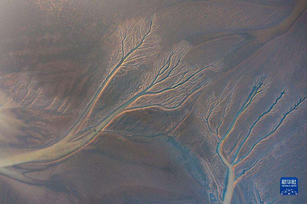 12月24日拍攝的長(cháng)江張家港灣段“潮汐樹(shù)” 景觀(guān)(無(wú)人機照片)。