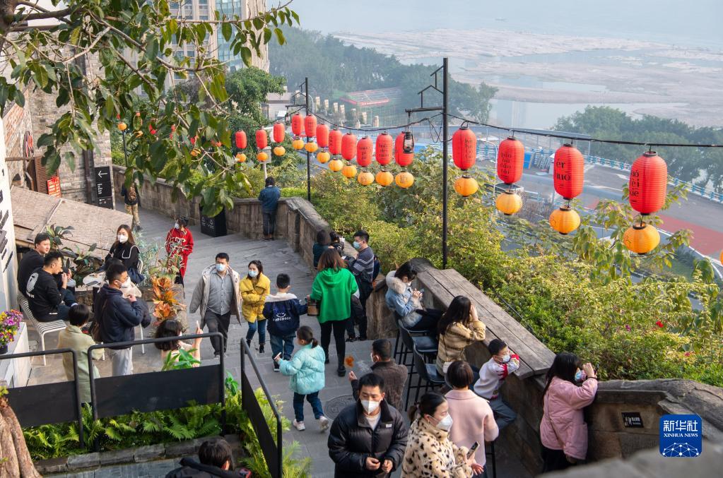 12月24日,市民游客在位于重慶解放碑商圈的著(zhù)名景點(diǎn)山城巷游覽。