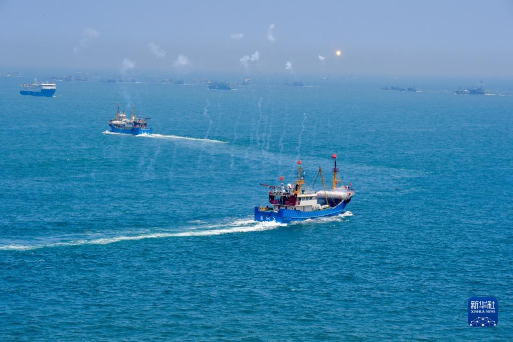 8月16日,福建省福州市連江縣苔菉中心漁港開(kāi)漁出海的漁船在海面航行。