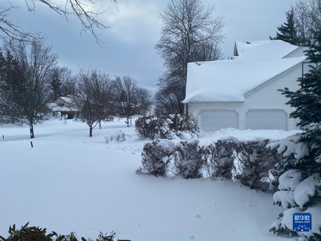 這是12月25日在美國紐約州伊利縣阿默斯特地區拍攝的雪后景象。