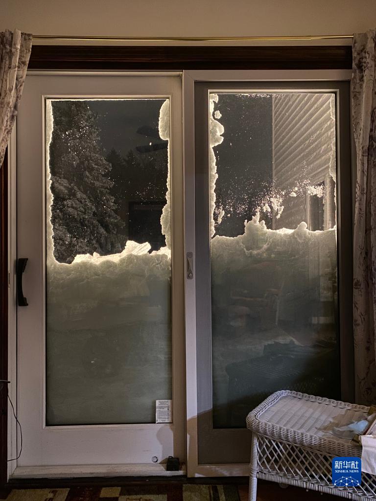 12月24日,在美國紐約州伊利縣阿默斯特地區,居民家中通往室外的推拉門(mén)近半被大雪掩埋。