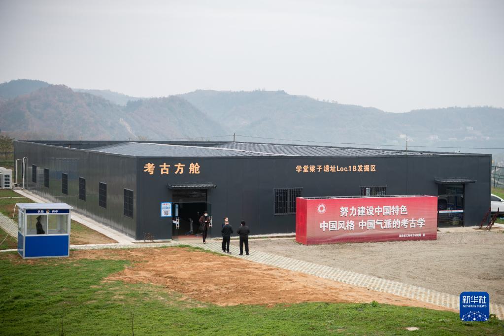 12月3日拍攝的學(xué)堂梁子遺址“鄖縣人”3號頭骨化石考古方艙。
