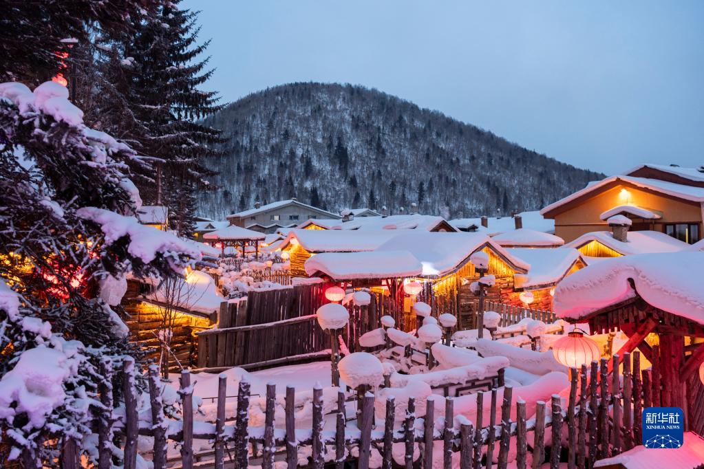 這是在黑龍江省海林市拍攝的雪鄉景區傍晚景色(2022年12月14日攝)。