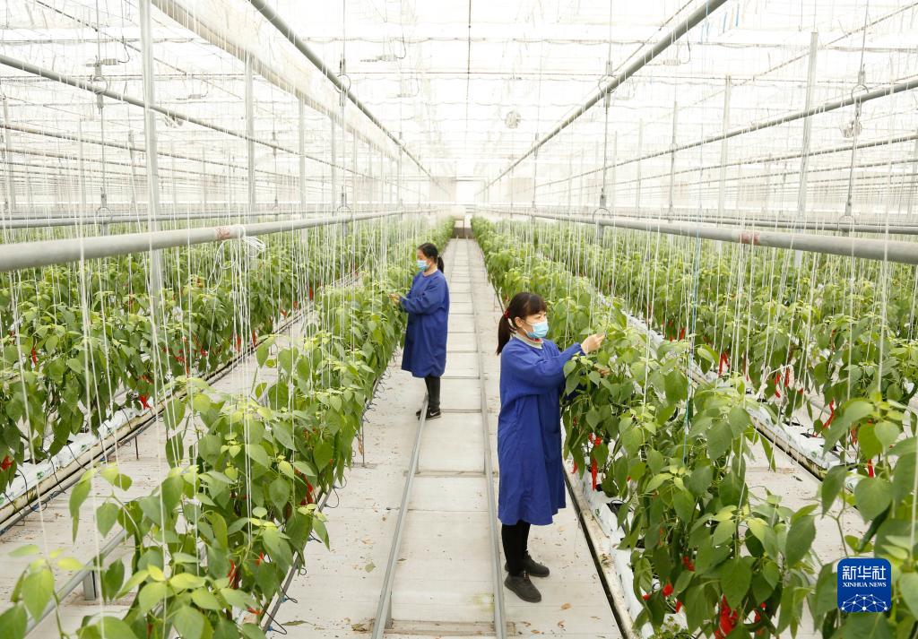12月27日,在邢臺市南和區賈宋鎮一家現代農業(yè)園區,工人在管護辣椒。