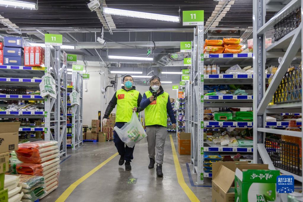 12月27日,在上海市徐匯區的美團買(mǎi)菜前置倉,青年突擊隊隊員進(jìn)行分揀工作。