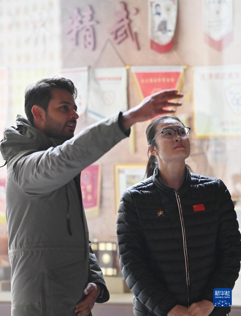 穆罕默德·納比爾(左)和霍靜虹一起在天津市西青區精武鎮霍元甲紀念館參觀(guān)(12月25日攝)。