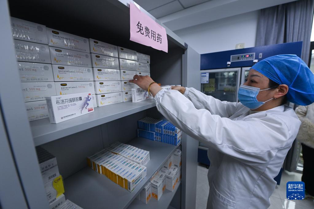 12月28日,在織里鎮軋村村衛生室的藥房?jì)?,醫生在整理一批用于免費贈藥給村民的解熱鎮痛藥物。