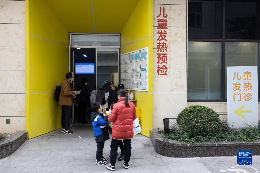 12月27日,上海交通大學(xué)醫學(xué)院附屬新華醫院兒科發(fā)熱門(mén)診入口處。