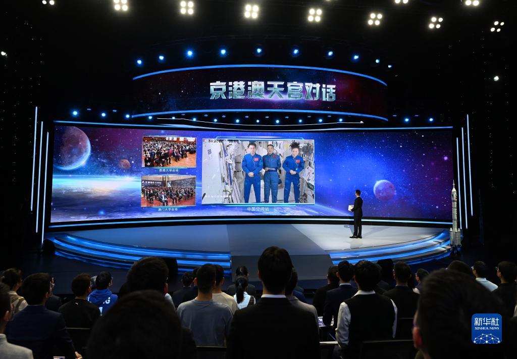 1月1日拍攝的“元旦京港澳天宮對話(huà)”活動(dòng)北京主會(huì )場(chǎng)?;顒?dòng)采取天地連線(xiàn)、多地協(xié)同形式進(jìn)行,由中央廣播電視總臺進(jìn)行全程現場(chǎng)直播。航天專(zhuān)家和在天宮空間站的航天員與來(lái)自北京、香港和澳門(mén)的青年學(xué)子展開(kāi)互動(dòng)交流?!⌒氯A社記者 金良快 攝