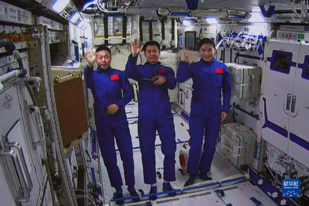7月25日在北京航天飛行控制中心拍攝的神舟十四號航天員陳冬(中)、劉洋(右)、蔡旭哲進(jìn)入問(wèn)天實(shí)驗艙。神舟十四號航天員乘組于7月25日10時(shí)03分成功開(kāi)啟問(wèn)天實(shí)驗艙艙門(mén),順利進(jìn)入問(wèn)天實(shí)驗艙。這是中國航天員首次在軌進(jìn)入科學(xué)實(shí)驗艙?!⌒氯A社記者 郭中正 攝
