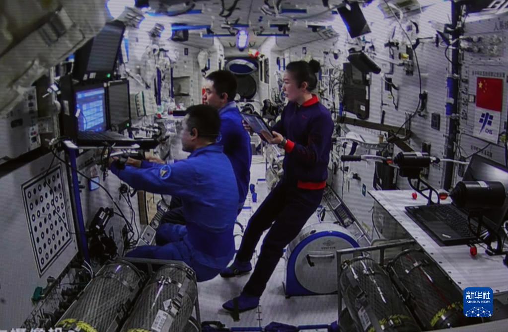1月8日在北京航天飛行控制中心拍攝的神舟十三號航天員乘組進(jìn)行手控遙操作天舟二號貨運飛船與空間站組合體交會(huì )對接試驗,航天員通過(guò)手控遙操作方式控制貨運飛船。 新華社記者 郭中正 攝