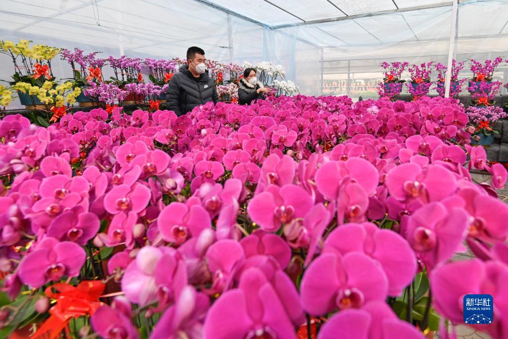 元旦、春節臨近,人們紛紛選購花卉、瓜果、春聯(lián)等年貨,迎接佳節。