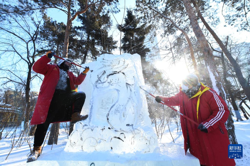 12月29日,參賽選手在進(jìn)行冰雕創(chuàng )作。