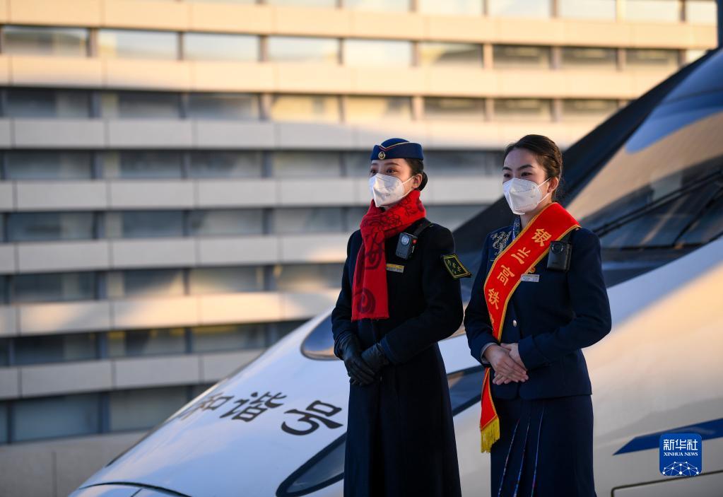 12月29日,乘務(wù)人員在銀蘭高鐵中衛南站等候D2763次列車(chē)發(fā)車(chē)。