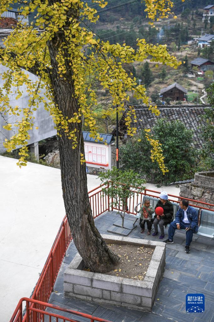 劉開(kāi)福(右)與村民交流(2022年11月14日攝)。