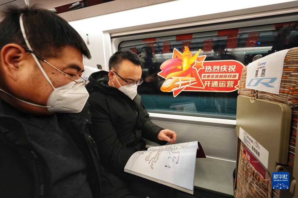 12月30日,唐山開(kāi)往北京的首趟G8802次列車(chē)上的旅客。