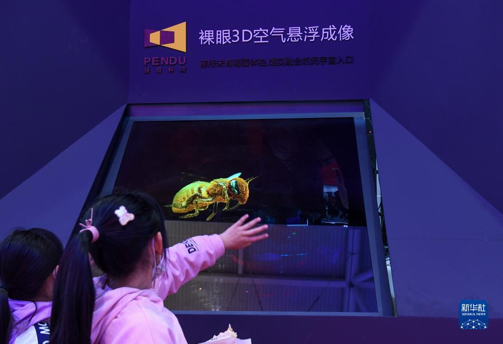 12月29日,參觀(guān)者在第十八屆文博會(huì )上體驗裸眼3D空氣懸浮成像。