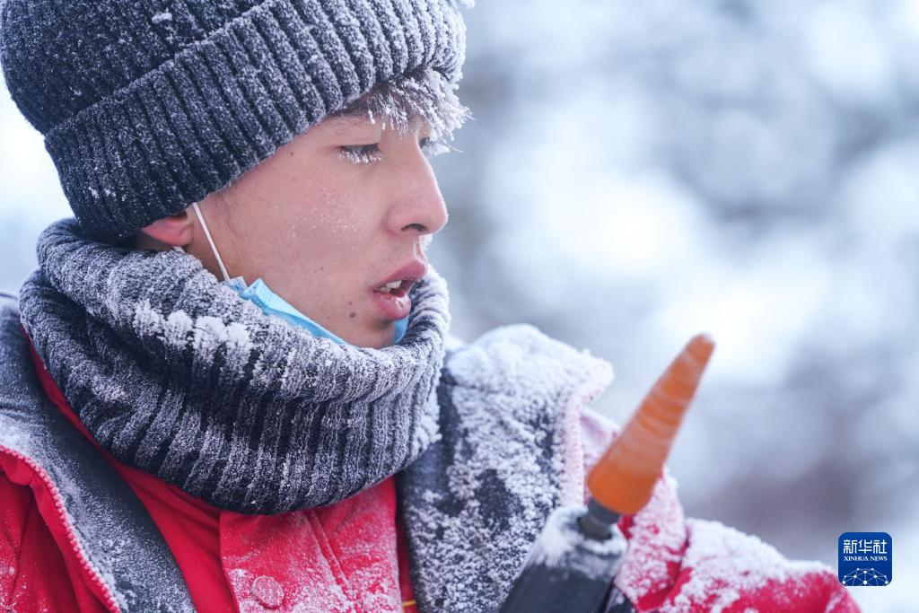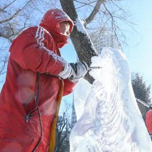 當日,在黑龍江省哈爾濱市,參加第17屆全國大學(xué)生冰雕藝術(shù)設計創(chuàng )作大賽的冰雕選手在嚴寒中進(jìn)行藝術(shù)創(chuàng )作。