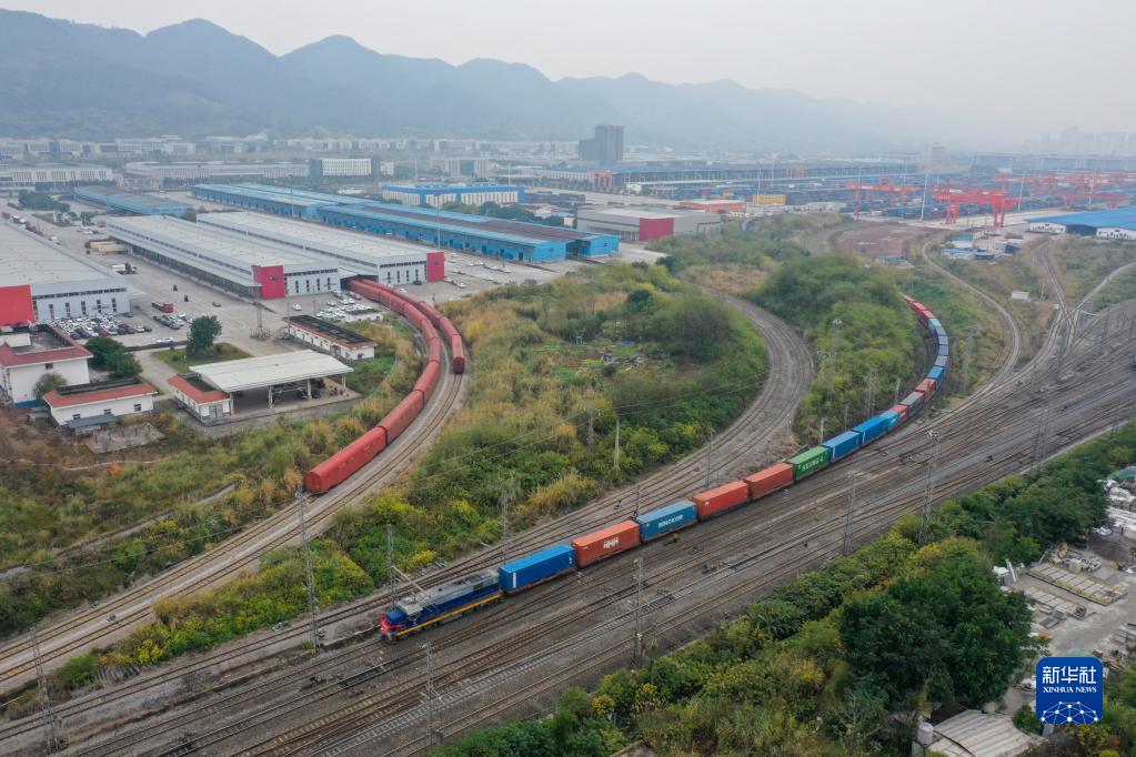 12月30日,西部陸海新通道鐵海聯(lián)運班列在重慶團結村中心站順利發(fā)車(chē)(無(wú)人機照片)。