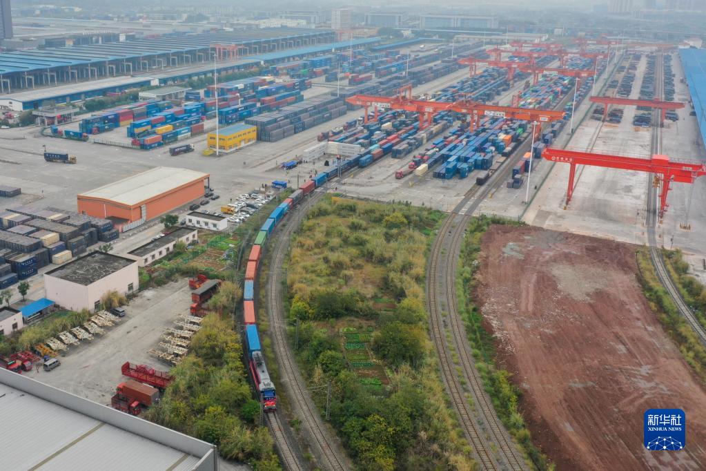 12月30日,西部陸海新通道鐵海聯(lián)運班列在重慶團結村中心站順利發(fā)車(chē)(無(wú)人機照片)。