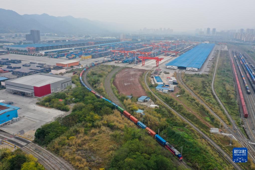 12月30日,西部陸海新通道鐵海聯(lián)運班列在重慶團結村中心站順利發(fā)車(chē)(無(wú)人機照片)。