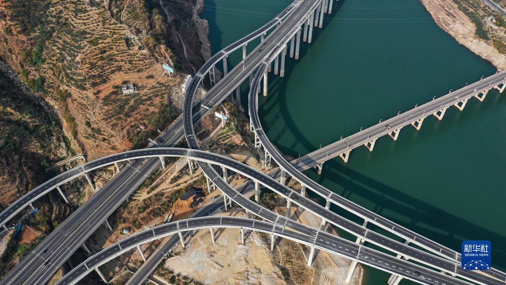 12月30日,俯瞰峨眉至漢源高速公路流沙河樞紐互通(無(wú)人機照片)。