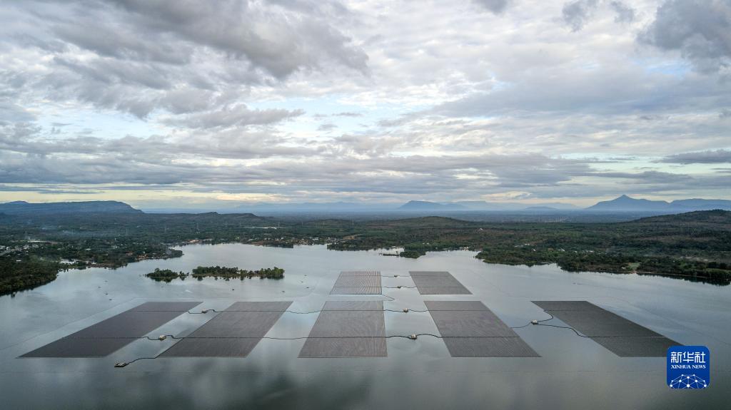 在距離泰國首都曼谷600多公里的烏汶府詩(shī)琳通水庫上,七個(gè)碩大的藍色方形“島嶼”在陽(yáng)光映照下熠熠生輝。這是中泰兩國聯(lián)合修建、泰國目前最大的浮體光伏項目。自2021年10月投入商業(yè)運營(yíng)以來(lái),這些中國制造的電池板不斷將日光轉化為清潔電能,輸送至千家萬(wàn)戶(hù)。