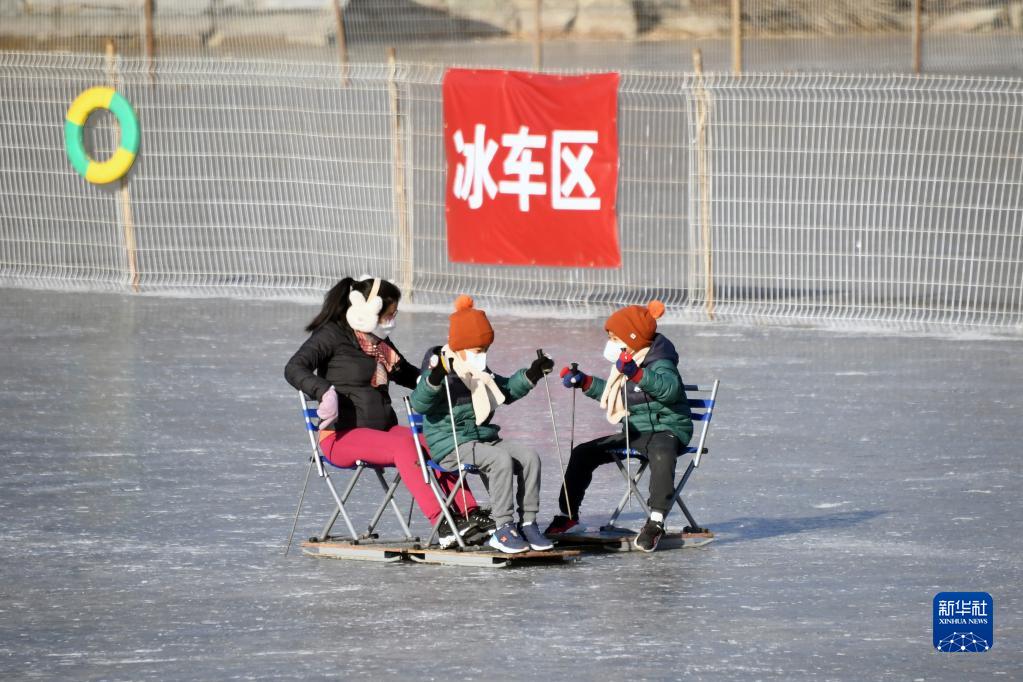 12月31日,人們在北京大學(xué)未名湖冰場(chǎng)上玩冰車(chē)。