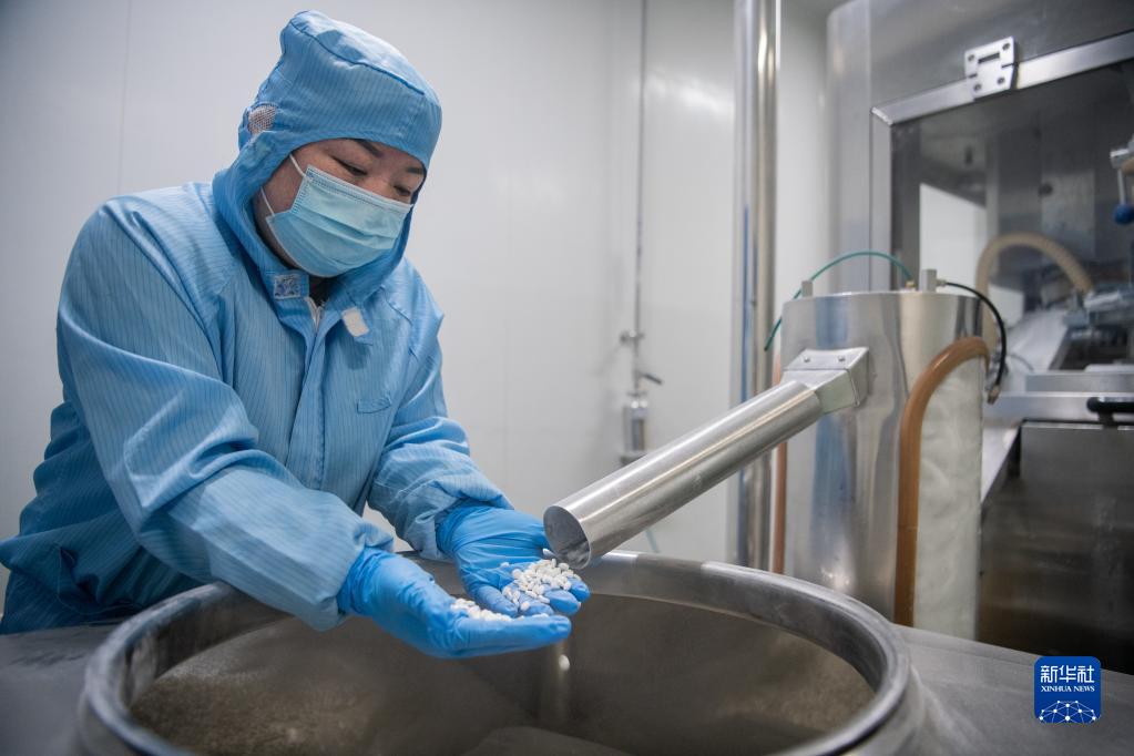 12月30日,工作人員在壓片過(guò)程中檢查藥片外觀(guān)。