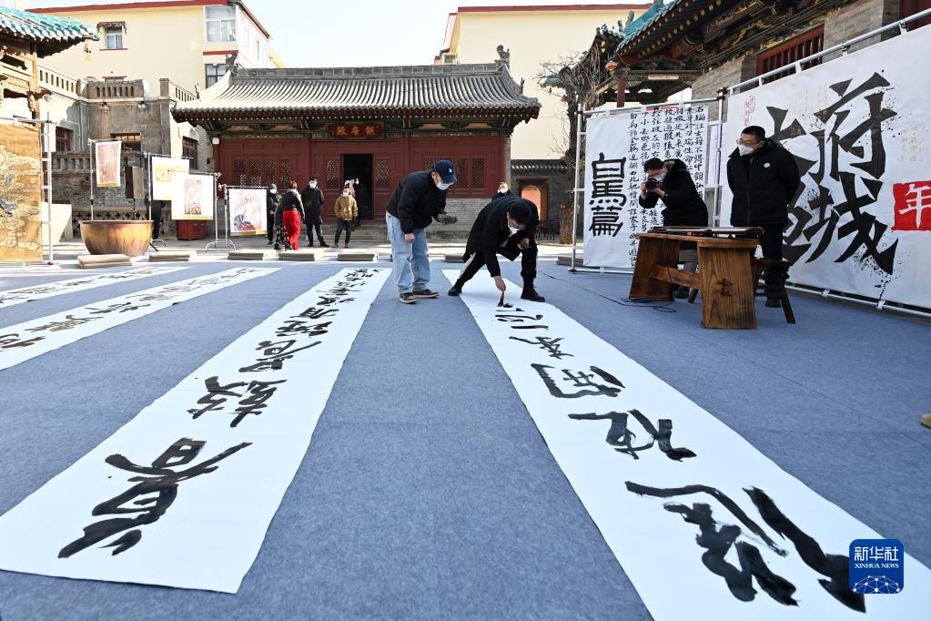 12月31日,書(shū)法家在活動(dòng)現場(chǎng)表演書(shū)法。