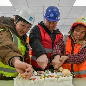 濟南:建設者過(guò)集體生日迎新年
