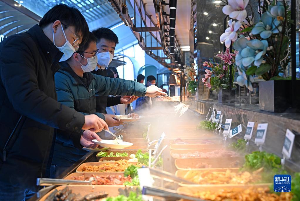 12月31日,顧客在天津恒隆廣場(chǎng)一家自助餐廳內取餐。