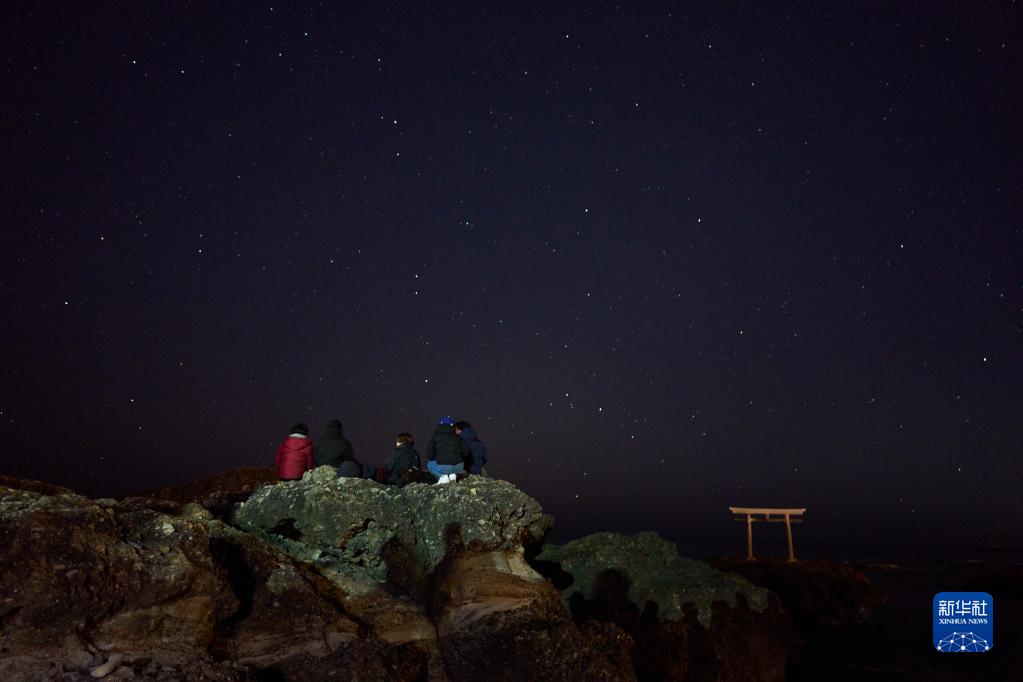 1月1日,人們在日本茨城縣大洗町的海邊等待日出。
