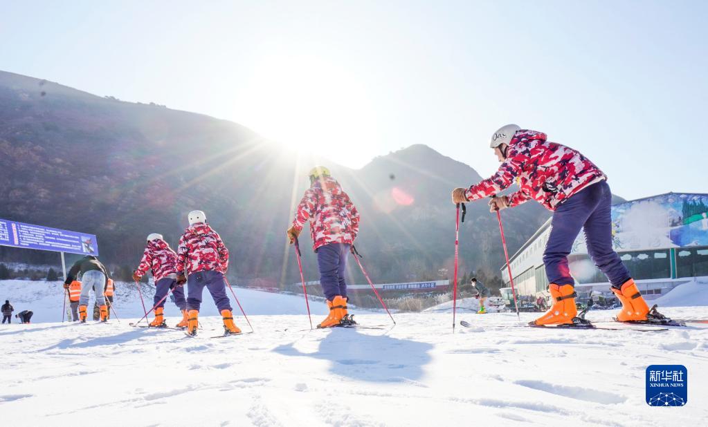 2022年12月31日,滑雪愛(ài)好者在河北省遵化市一家滑雪場(chǎng)練習滑雪。