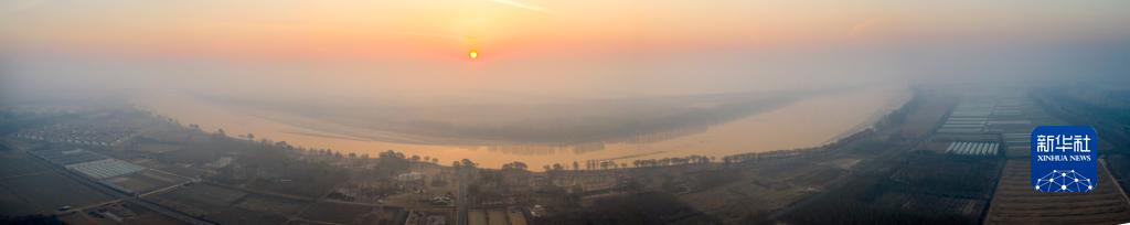 1月1日,在山東省濱州市濱城區市西街道黃河小街灣生態(tài)公園拍攝的日出(無(wú)人機全景照片)。