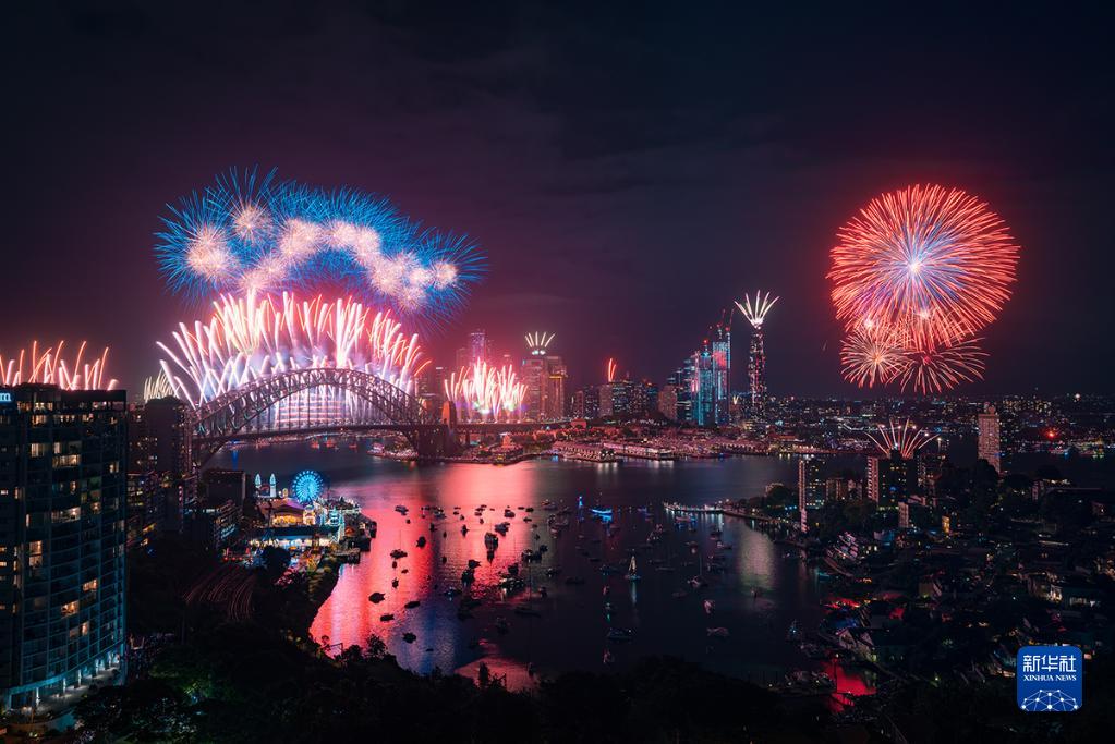 這是2023年1月1日在澳大利亞悉尼港拍攝的新年煙花。