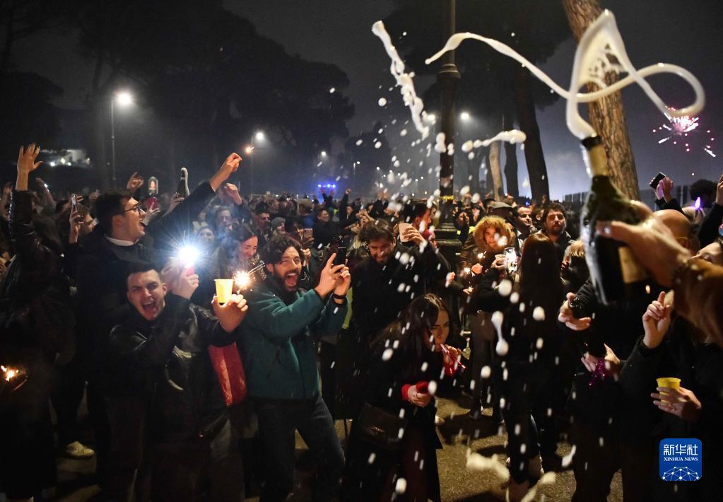 2023年1月1日,人們在意大利羅馬慶祝新年。