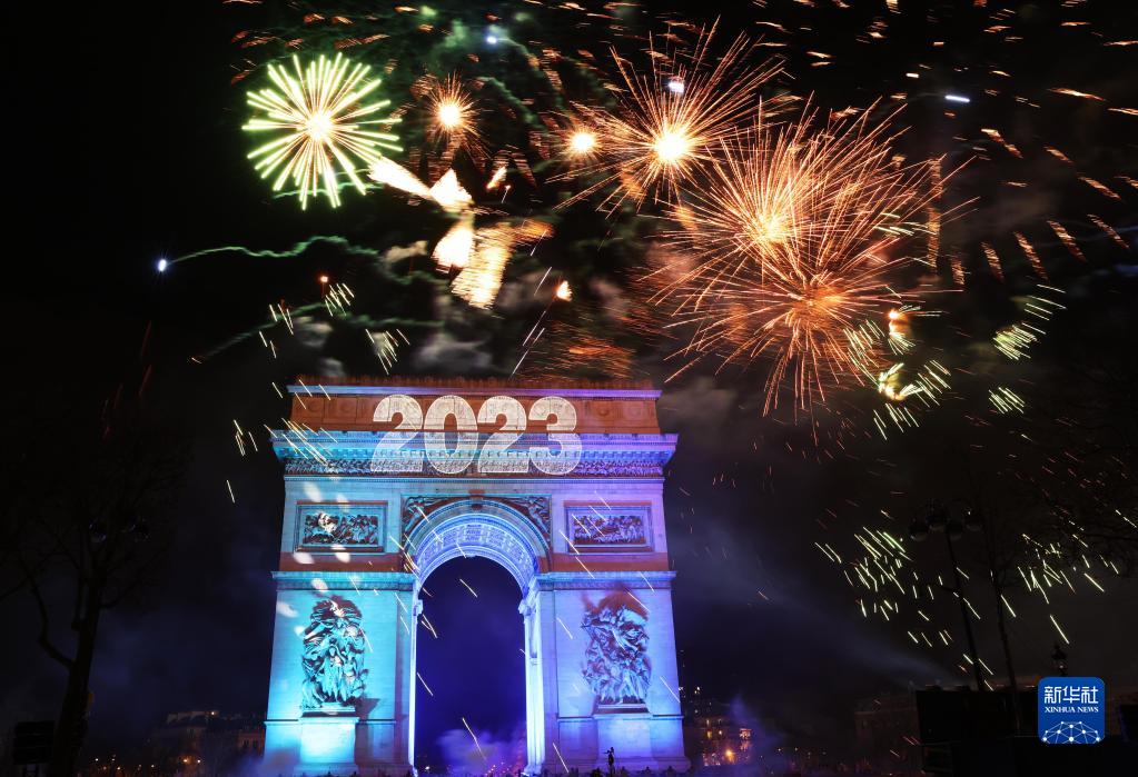 這是2023年1月1日在法國巴黎凱旋門(mén)拍攝的新年焰火。